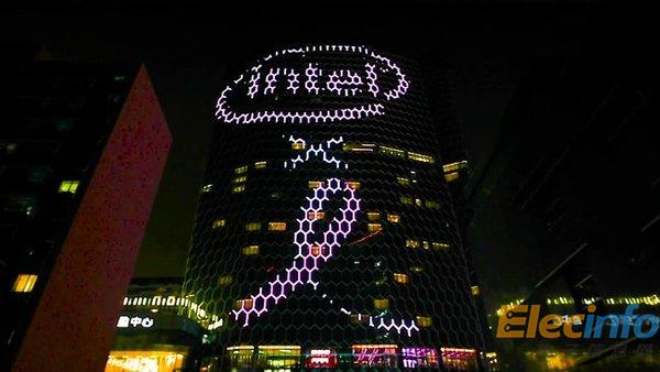 9月28日夜,英特爾的藍色LOGO變?yōu)榉凵W耀在北京三里屯
