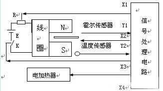 X1—控制信號,調節電阻R,控制磁場強度 X2—控制信號,調節霍爾傳感器的激勵電流