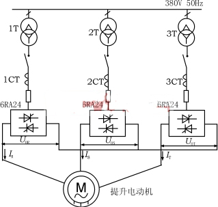 晶閘管串級調(diào)速自動化提升機(jī),可以獲得較好的控制特性。但電控設(shè)備多、容量大。為獲得減速階段的制動力矩,還需一套動力制動裝置,因而使系統(tǒng)復(fù)雜,投資增加。特別是對于500kW以上的繞線電動機(jī),其轉(zhuǎn)子電壓約為700V左右,使晶閘管裝置的選擇帶來困難。
