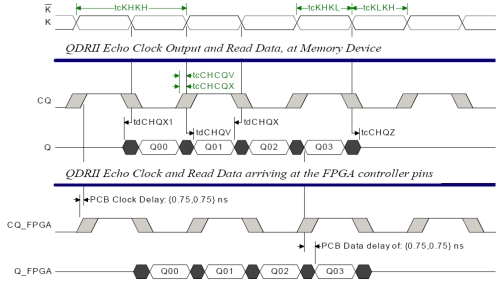首先,我們使用TimingDesigner通過存儲器數據表為QDR SRAM創造一個圖表(圖4)。我們利用此圖確定存儲器與有效數據窗口中的時鐘和數據信號時序的關系。目的是精確定義存儲器的信號關系,并在PCB到FPGA的設計中傳遞這種關系。
