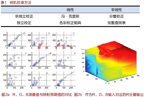 其中F(x)為映射向量函數,為R、G、B主要色彩分量的離散向量(一般為8位、10位或12位)。根據是否要進行線性映射以及是否要獨立校正色彩分量,該映射函數可按照表1分類。