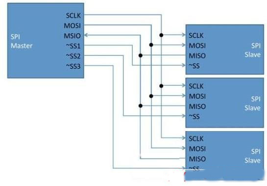 SPI是一個4線串行總線,由于總線上僅允許有一個主器件因而無需總線仲裁。此外,還有兩個數(shù)據(jù)引腳,都不是真正的雙向引腳。MOSI(主器件輸出,從器件輸入)線負(fù)責(zé)將數(shù)據(jù)發(fā)送給外設(shè);MISO(主器件輸入,從器件輸出)負(fù)責(zé)將數(shù)據(jù)發(fā)送給主器件。時鐘(SCLK)和從器件選擇(SS)信號提供總線控制,它們都是由主器件驅(qū)動。雖然這種安排避免了總線仲裁的需要,但是需要使用更多的信號。