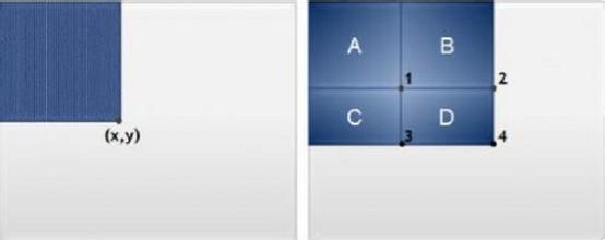 在面部檢測算法的第一級,利用被稱為積分圖像的中間表示,可以快速計算矩形特征。如圖3所示,點(x,y)的積分圖像值是上部和左部所有像素的總和。D內像素的總和可以計算為4+1-(2+3)。